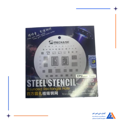 شابلون های آی سی – یکی دیگر از ابزار های در تعمیرات موبایل است که در سایز ها و اندازه مختلف به شکل ورق های فلزی هشتند.از شابلون ها می توانید برای پایه سازی REBALL کردن آی سی های BGA استفاده نمایید. این ورق فلزی مورد استفاده تعمیرکاران گوشی موبایل جهت عملیات پیش مونتاژ و پایه سازی آی سی BGA مورد استفاده قرار می گیرد. ابعاد آی سی موبایل و حفره های ایجاد شده بر روی آن توسط دستگاه های دقیق CNC طراحی می‌شود به طوری که پایه های IC روی این ورق به صورت دقیق قرار گیرد. حفره های ایجاد شده روی شابلون با پایه IC باید دقیق روی هم قرار گیرند و سپس تعمیرکار با استفاده از خمیر قلع ، یک کارد یا اسپاتول فلزی و گرمای هیتر عملیات پایه سازی یا ریبال را انجام می‌دهد.