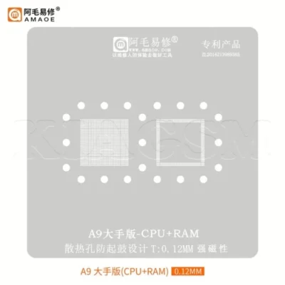شابلون های آی سی – یکی دیگر از ابزار های در تعمیرات موبایل است که در سایز ها و اندازه مختلف به شکل ورق های فلزی هشتند.از شابلون ها می توانید برای پایه سازی REBALL کردن آی سی های BGA استفاده نمایید. این ورق فلزی مورد استفاده تعمیرکاران گوشی موبایل جهت عملیات پیش مونتاژ و پایه سازی آی سی BGA مورد استفاده قرار می گیرد. ابعاد آی سی موبایل و حفره های ایجاد شده بر روی آن توسط دستگاه های دقیق CNC طراحی می‌شود به طوری که پایه های IC روی این ورق به صورت دقیق قرار گیرد. حفره های ایجاد شده روی شابلون با پایه IC باید دقیق روی هم قرار گیرند و سپس تعمیرکار با استفاده از خمیر قلع ، یک کارد یا اسپاتول فلزی و گرمای هیتر عملیات پایه سازی یا ریبال را انجام می‌دهد.