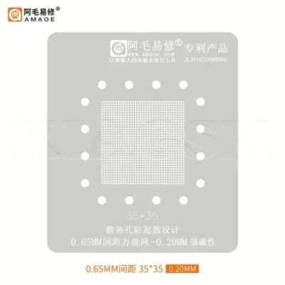 شابلون های آی سی – یکی دیگر از ابزار های در تعمیرات موبایل است که در سایز ها و اندازه مختلف به شکل ورق های فلزی هشتند.از شابلون ها می توانید برای پایه سازی REBALL کردن آی سی های BGA استفاده نمایید. این ورق فلزی مورد استفاده تعمیرکاران گوشی موبایل جهت عملیات پیش مونتاژ و پایه سازی آی سی BGA مورد استفاده قرار می گیرد. ابعاد آی سی موبایل و حفره های ایجاد شده بر روی آن توسط دستگاه های دقیق CNC طراحی می‌شود به طوری که پایه های IC روی این ورق به صورت دقیق قرار گیرد. حفره های ایجاد شده روی شابلون با پایه IC باید دقیق روی هم قرار گیرند و سپس تعمیرکار با استفاده از خمیر قلع ، یک کارد یا اسپاتول فلزی و گرمای هیتر عملیات پایه سازی یا ریبال را انجام می‌دهد.