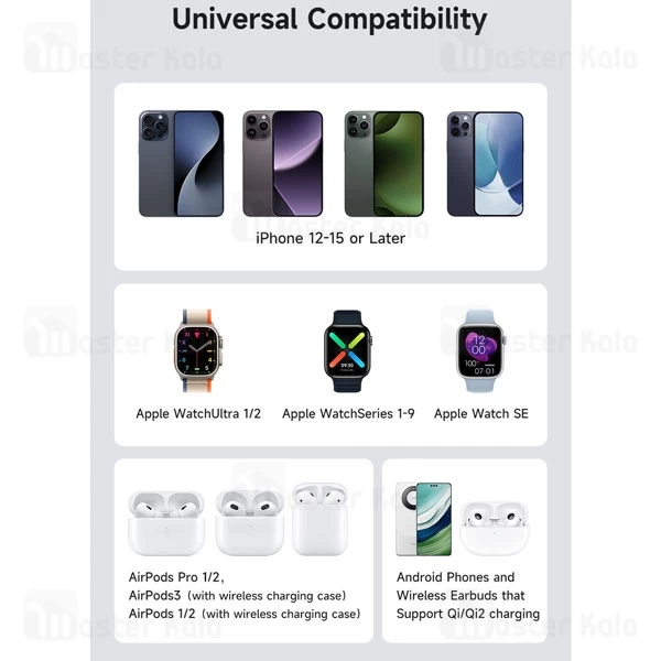 از نظر ساختار داخلی شارژر وایرلس مک دودو CH-246 از 3 پنل شارژ تشکیل شده که می توان همزمان گوشی آیفون، ایرپاد و اپل واچ را با آن شارژ کرد.این محصول آیفون های مگ سیف سری 12 تا 15 و ایرپاد های سری 2 و 3 و پرو را پشتیبانی می کند.