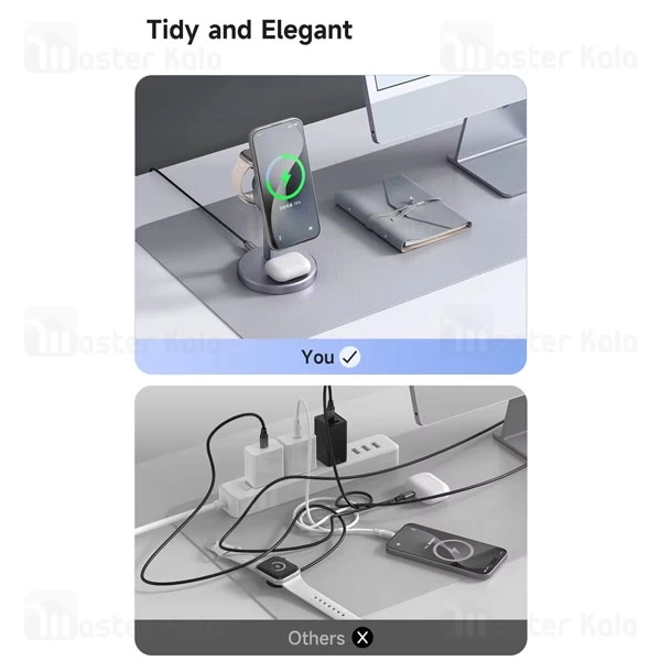 استند و شارژر وایرلس مگنتی مک دودو Mcdodo CH-246 Qi2 توان 15 وات با امکان شارژ اپل واچ دارای آداپتور