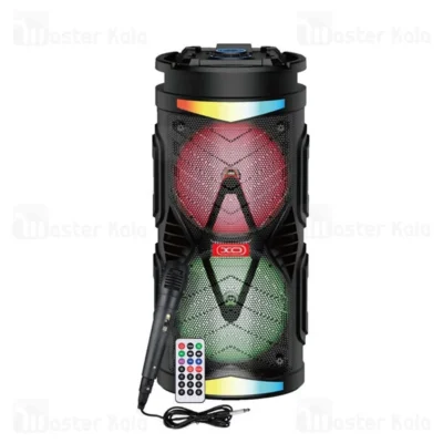 داخل پک اسپیکر بلوتوث XO F35 محصول به غیر از اسپیکر، میکروفون و ریموت کنترل نیز قرار دارد.