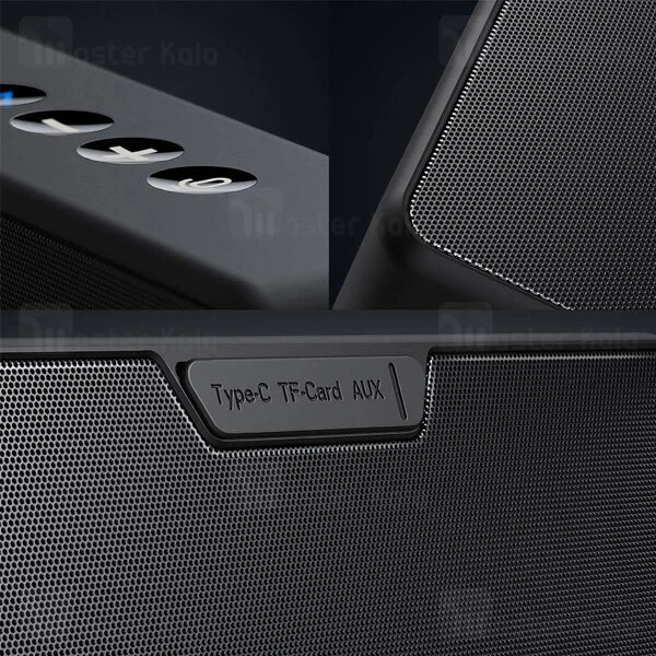 در قسمت پشتی اسپیکر بلوتوث بیسوس V1 قسمتی وجود دارد که شیار کارت حافظه microSD به همراه درگاه AUX وجود داشته و یک درگاه تایپ سی نیز برای شارژ این دستگاه تعبیه شده است.
