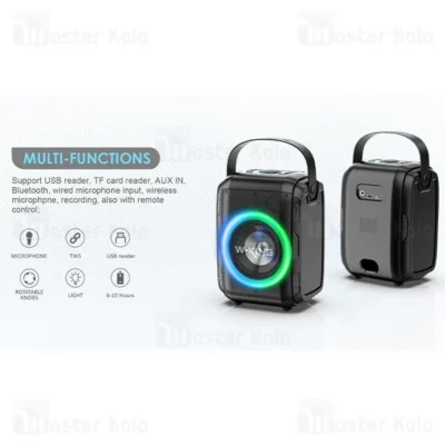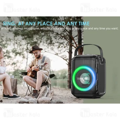 اسپیکر بلوتوث دبلیو کینگ T9mini دارای درگاه اتصال میکروفون است و شما می توانید میکروفون را به صورت سیمی به این اسپیکر متصل کنید.