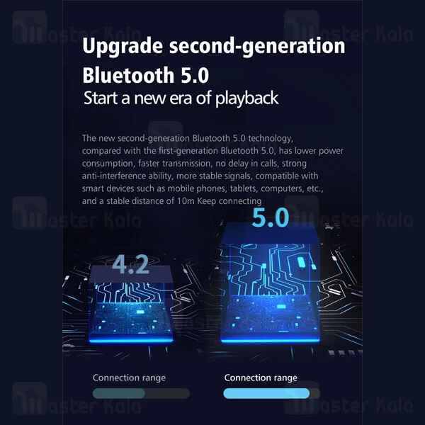 اسپیکر بلوتوث زیلوت S67 دارای بلوتوث نسخه 5.0 برای اتصال به دستگاهها می باشد. اگر نسخه بلوتوث دستگاه شما نیز 5.0 باشد باعث اتصال پایدار و بهتری خواهد شد؛ بعلاوه باتری کمتری نیز مصرف خواهد شد.