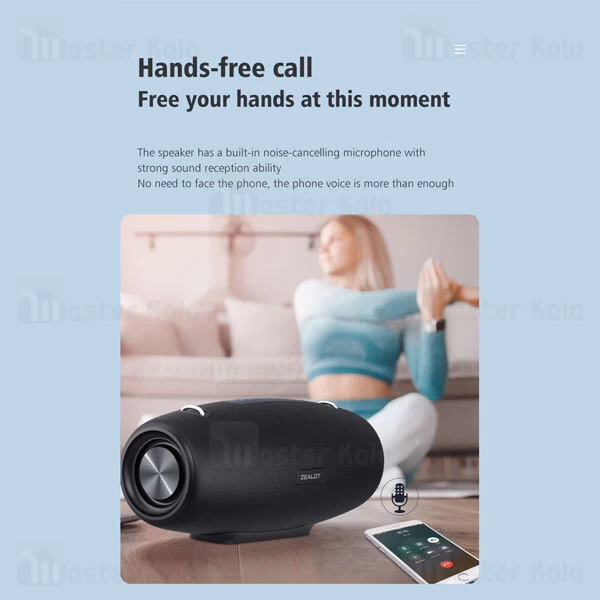 اسپیکر بلوتوث زیلوت S67 دارای یک میکروفون داخلی با قابلیت حذف نویز بوده که با آن می توانید به مکالمه بپردازید.