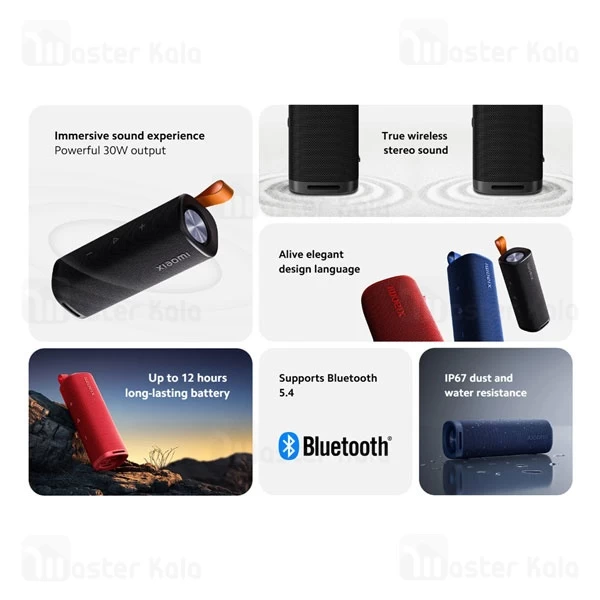 اسپیکر Xiaomi Sound Outdoor MDZ-38-DB یک اسپیکر 30 واتی با باتری 2600 میلی آمپر ساعتی بوده که دارای بلوتوث نسخه 5.4 است. اسپیکر Sound Outdoor MDZ-38-DB دارای استاندارد مقاومت در برابر آب IP67 بوده که باعث شده این اسپیکر شیائومی در برابر رطوبت و پاشش آب مقاومت مناسبی داشته باشد.