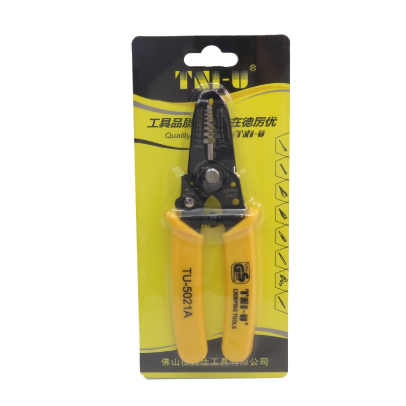 انبر سیم لخت کن مدل TU-5021A برند TNI-U دارای تیغه برش فولادی بوده و برای سیمهای سایز 0.6 تا 2.6 و 22 تا 10 AWG مناسب است.