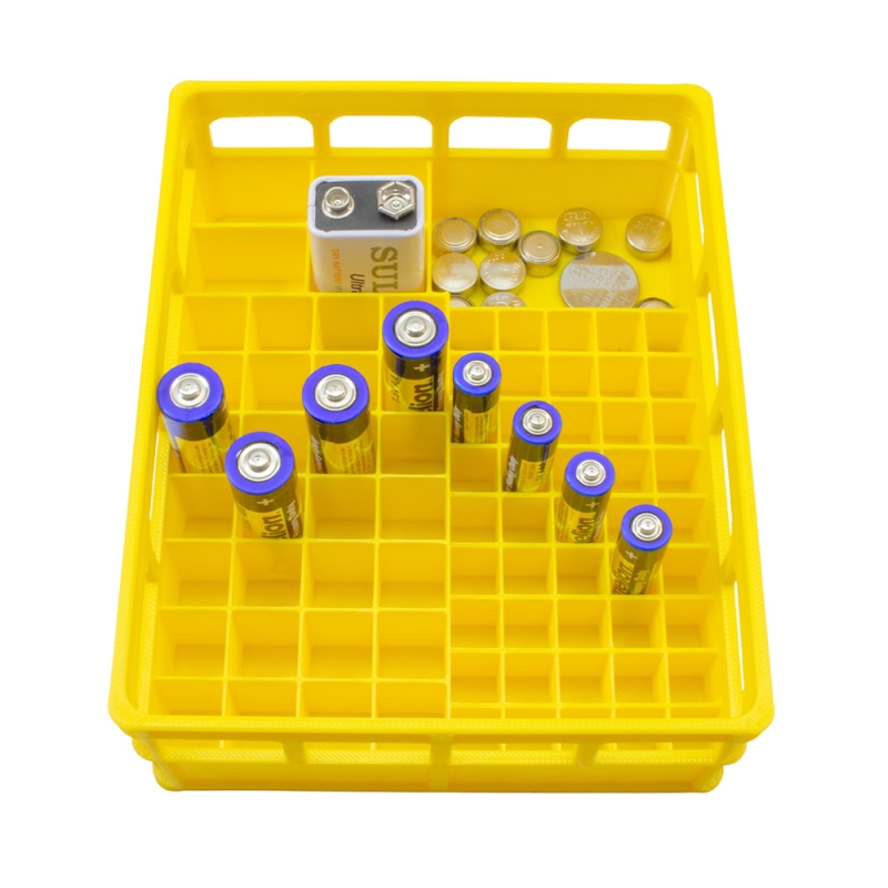 این اورگانایزر باتری چندمنظوره با بهرهگیری از طراحی ماژولار و ساختار شانهای، با چاپگر سهبعدی تولید شده است. ساختار داخلی آن شامل حفرههای منظم و دقیق با ابعاد مختلف است که قابلیت نگهداری باتریهای رایج از جمله باتریهای قلمی (AA)، نیمقلمی (AAA)، سکهای و مشابه و حتی باتریهای خاصتر مانند 9V را فراهم میسازد همچنین چیدمان داخلی بهگونهای طراحی شده تا از تماس ناخواستهی قطبین باتریها و بروز اتصال کوتاه جلوگیری کند. بدنه از جنس ABS پرینت شده و در برابر ضربههای ملایم، رطوبت محیط کارگاهی و شرایط انبارش مقاومت مناسبی دارد. فضای آزاد تعبیهشده در گوشهی کیس نیز بهعنوان محل ذخیرهی متفرقه، باتری خراب، برچسب یا ابزار تست میتواند مورد استفاده قرار گیرد. این کیس انتخابی ایدهآل برای کارگاههای الکترونیک، میزهای تعمیرات، تجهیزات قابل حمل یا حتی خانههایی است که با باتریهای متعدد سروکار دارند.
