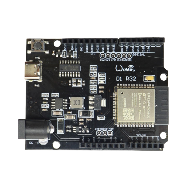برد WeMos D1 R32 یک برد توسعه حرفهای با طراحی مشابه آردوینو UNO است که از ماژول قدرتمند ESP-WROOM-32 بهره میبرد. این برد با برخورداری از پردازنده دو هستهای تا سرعت 240 مگاهرتز، حافظه فلش 4 مگابایت و 520 کیلوبایت SRAM، برای پروژههای پیچیده اینترنت اشیاء، اتوماسیون، کنترل بیسیم و برنامهنویسی با Arduino IDE، NodeMCU یا MicroPython بسیار مناسب است. از طریق بلوتوث نسخه ۴.۲ و WiFi داخلی با استاندارد 802.11n، قابلیت ارتباطی قدرتمندی ارائه میدهد. طراحی آن کاملاً با شیلدهای آردوینو UNO همخوانی دارد و ورودی Type-C و جک آداپتور نیز امکان تغذیه منعطف را فراهم کرده است. این برد یک گزینه ایدهآل برای کاربرانی است که نیاز به سرعت پردازش بالا، امکانات ارتباطی بیسیم و پلتفرم توسعه استاندارد دارند.