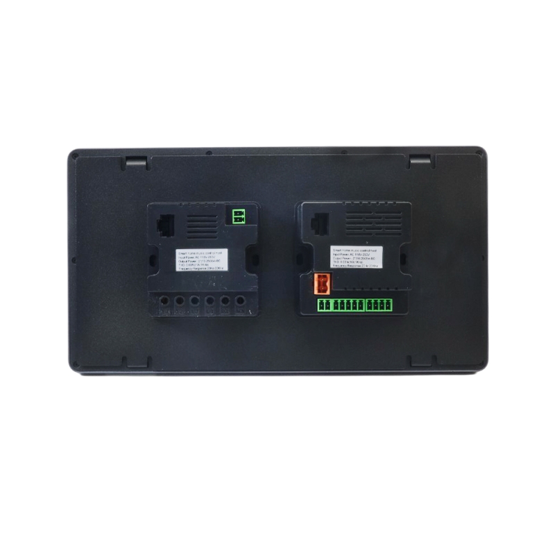This product is a smart central touch panel that allows you to control your smart home devices via Wi-Fi. The central intelligent touch panel can also be controlled by mobile software. By installing the relevant software on your smartphone and connecting the central panel to the local Wi-Fi network, you can easily control smart devices and perform various settings such as turning on and off, temperature adjustment, brightness control, etc. Also, this panel has the ability to connect speakers in 2 channels and provides the possibility of direct control from the panel. For each speaker channel of this device, you can use speakers of 10 to 25 watts with an impedance of 4 to 8 ohms.