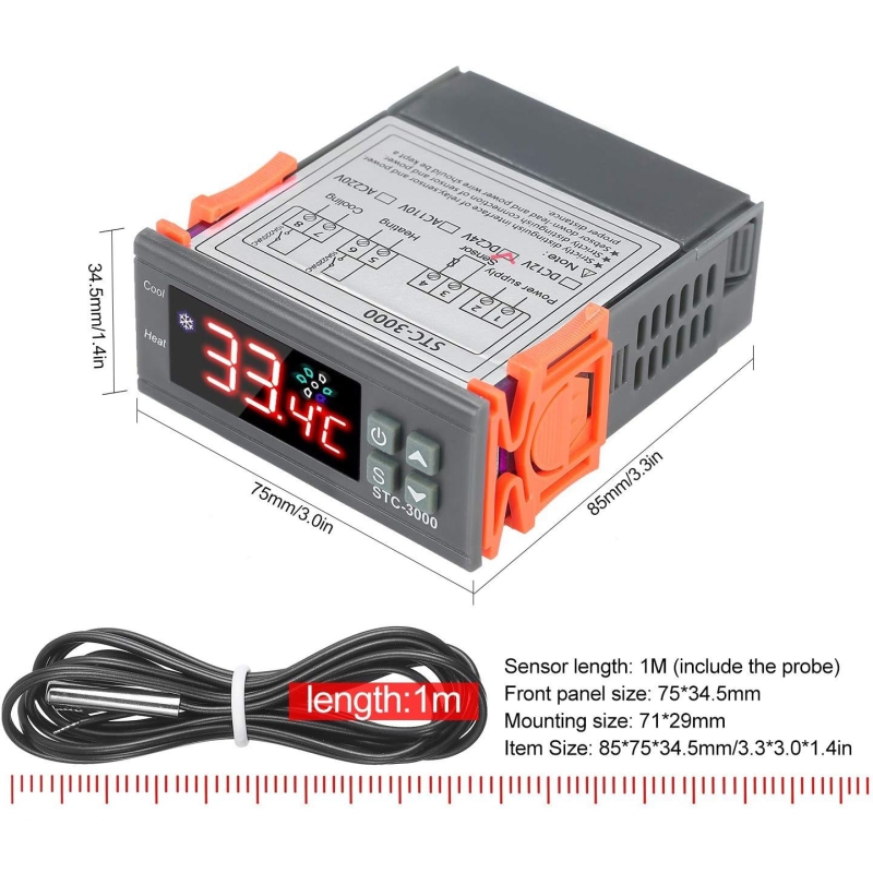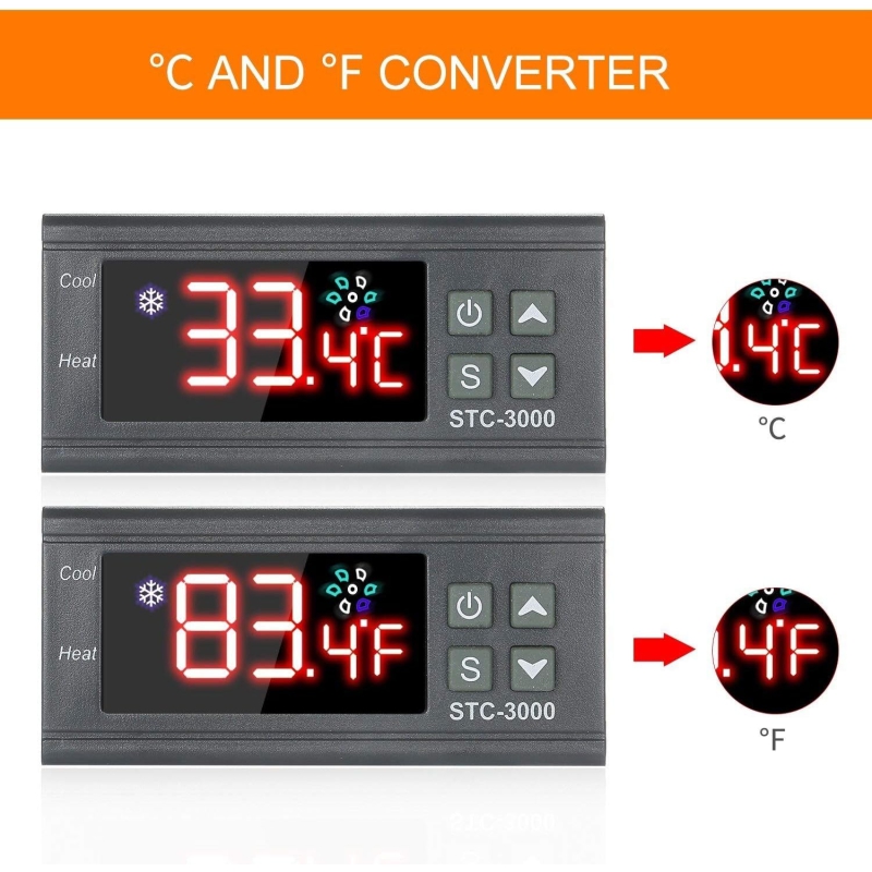 ترموستات STC-3000 دارای دو حالت کنترل گرمایش و سرمایش است و در صورت تجاوز از محدوده دمای مجاز، آلارم میدهد. نمایشگر LED ها اندازهگیری و تنظیم دما را نشان میدهد. این ترموستات دیجیتال STC-3000 در محدوده دمای 55- تا 90 درجه سانتیگراد اندازهگیری دما را با دقت 0.1 درجه سانتیگراد انجام میدهد.