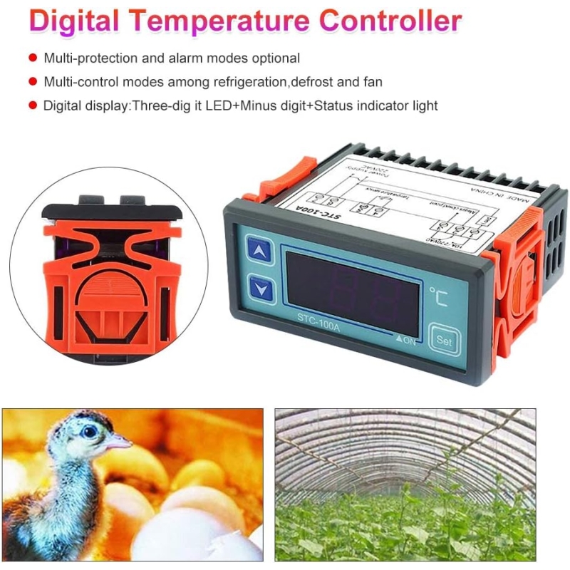 ترموستات دیجیتال STC-100A یک کنترلر دما با دقت بالا برای سیستمهای برودتی و حرارتی است که با تغذیه مستقیم 220 ولت AC عمل میکند. این دستگاه به کمک سنسور دمای NTC دما را بهصورت پیوسته اندازهگیری کرده و بسته به مقدار تنظیمشده، خروجیهای کنترل خود را فعال یا غیرفعال میکند. قابلیت تنظیم بازه دمایی وسیع از -40 تا +70 درجه سلسیوس و امکاناتی نظیر تأخیر در راهاندازی، محافظت در برابر خطاهای حسگر، و نمایشگر دیجیتال واضح از جمله ویژگیهای برجسته این ترموستات است. طراحی مقاوم با درجه حفاظت IP54، آن را برای استفاده در محیطهای صنعتی، سردخانهای، گلخانهای و تابلوهای برق مناسب میسازد. رابط کاربری ساده با سه کلید فشاری، امکان تنظیم سریع پارامترها و مشاهده دما را فراهم کرده و دقت کنترل را برای کاربران حرفهای و نیمهحرفهای افزایش میدهد.