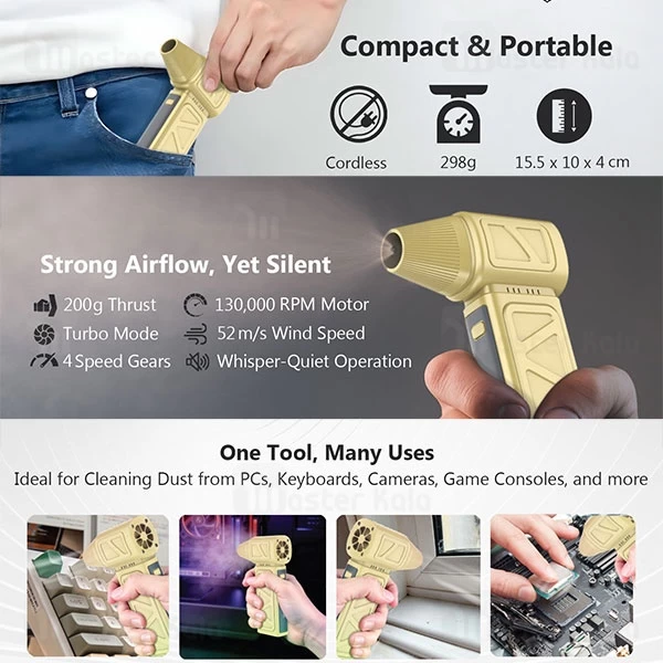 با وجود قدرت بالای موتور، صدای تولیدی جت فن شارژی Green Lion GNJPLT180W تنها 85 دسیبل است. این سطح نویز برای دستگاهی با چنین توان خروجی، بسیار پایین محسوب میشود و به کاربران اجازه میدهد در محیطهای مختلف بدون ایجاد مزاحمت صوتی از آن استفاده کنند.