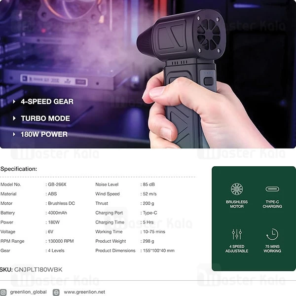 جت فن شارژی گرین لاین Green Lion JetPro Lite GNJPLT180W دمندگی 130000 دور در دقیقه