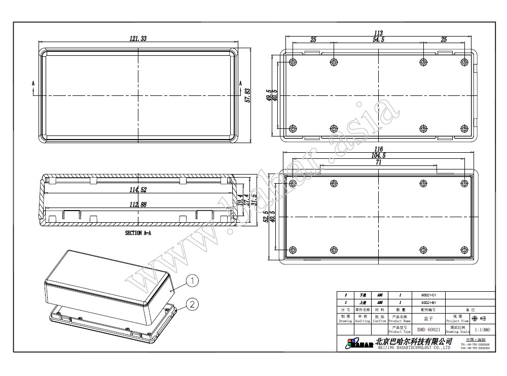جعبه برد پلاستیکی سفید مدل BMD-A سایز 121x58x31mm