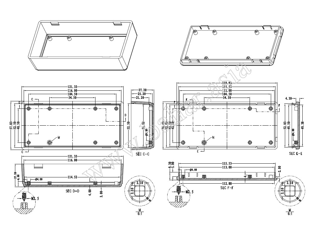 جعبه برد پلاستیکی مشکی مدل BMD-A سایز 121x58x31mm
