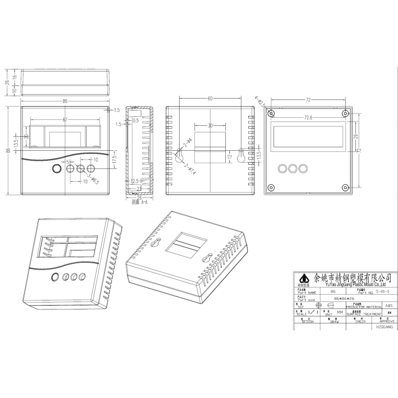 جعبه برد پلاستیکی وارداتی با پنل LCD سایز 86x86x26mm