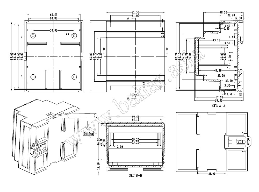 جعبه ریلی Rail Box سفید سایز 72x87x60mm