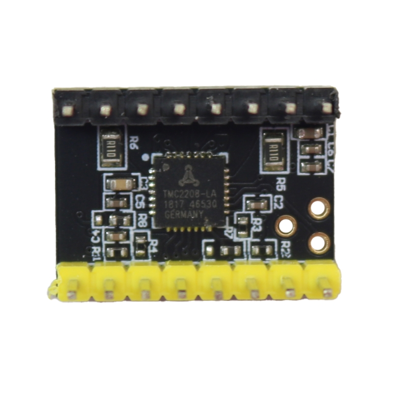 درایور TMC2208 V3.0 یکی از محبوبترین درایورهای استپر موتور برای پروژههای پرینتر سهبعدی و ماشینهای CNC است که طراحی و تولید شده است. این ماژول از تکنولوژی پیشرفته stealthChop2 برای حرکت بیصدا و smooth موتور بهره میبرد و در عین حال با استفاده از spreadCycle میتواند سرعت و پویایی بالایی ارائه دهد. پشتیبانی از دو حالت عملکرد STEP/DIR و UART باعث انعطافپذیری بالا در کاربردهای مختلف میشود. در حالت UART، پارامترهایی مانند جریان، میکرواستپها و حالتهای کاری میتوانند به صورت داینامیک از طریق فریمور کنترل شوند. این ماژول دارای هیتسینک آلومینیومی است که به خنکسازی موثر مدار کمک میکند. طراحی آن به گونهای است که نصب سادهای بر روی بردهای محبوب مانند SKR V1.3 دارد .
