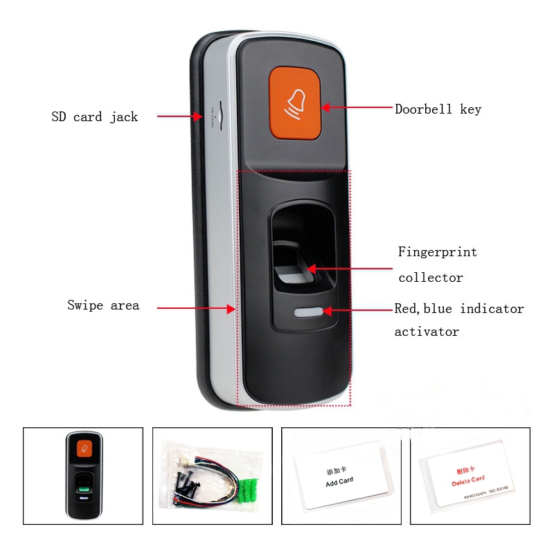 این دستگاه کنترل تردد دارای ظاهری شیک و امنیت بالا، مناسب برای هوشمند سازی درب منازل، اماکن با نصب آسان، از دو روش اثر انگشت و کارت های RFID 125KHZ