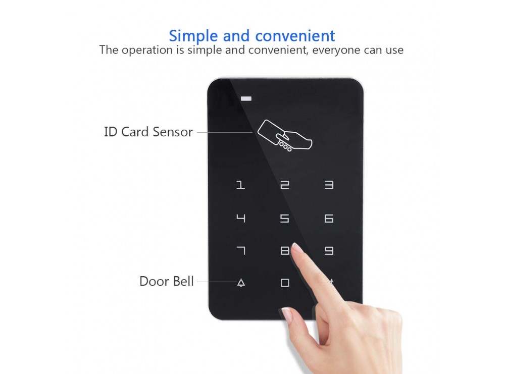 این دستگاه کنترل تردد دارای ظاهری شیک و امنیت بالا، مناسب برای هوشمند سازی درب منازل، اماکن با نصب آسان، از دو روش کارت های RFID 13.56Hz و رمز عبور قابل استفاده می باشد.