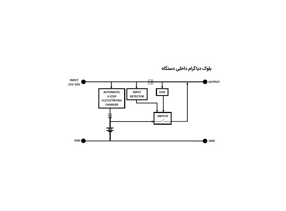 عملکرد دستگاه به این گونه می باشد که ولتاژ اعمال شده به ورودی آن، علاوه بر شارژ باتری، عیناً به خروجی دستگاه منتقل می شود و در هنگام قطع برق ورودی، دستگاه بلادرنگ و بدون هیچ تاخیری باتری را به خروجی وصل می نماید.