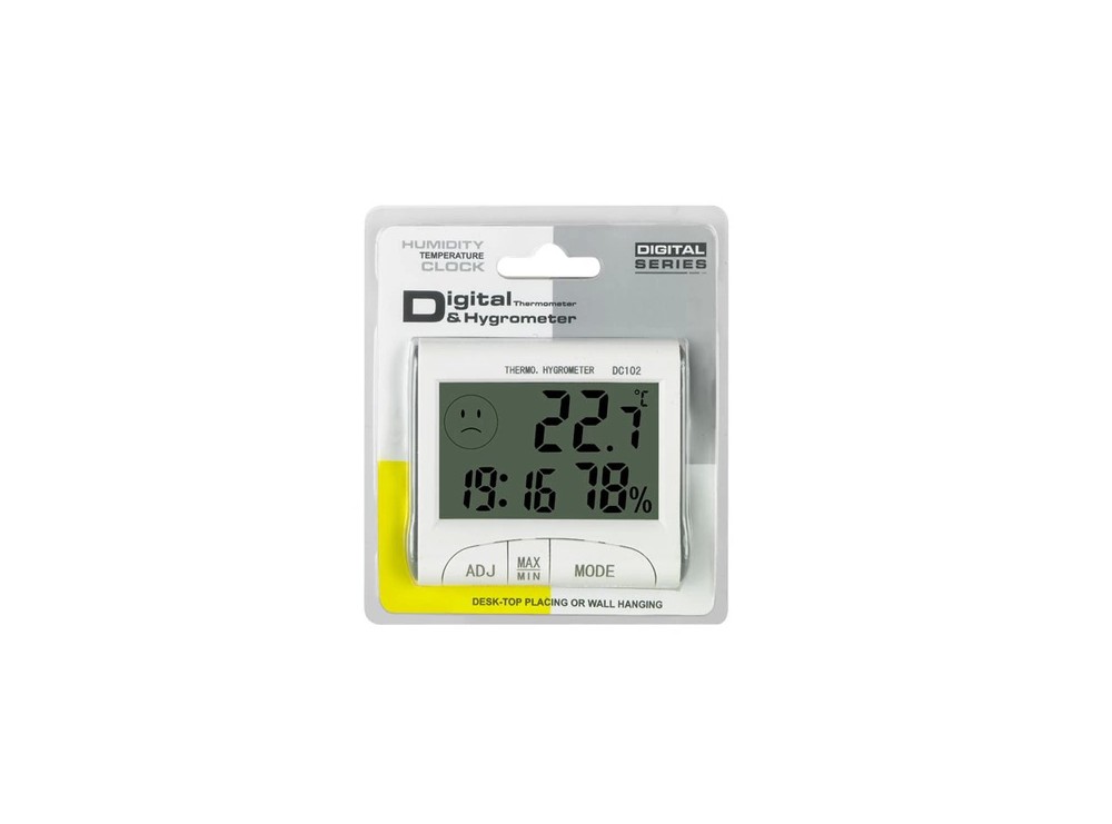 Specification The highest and lowest temperature memory function; 12/24 hourly clock; / temperature display switch; Measuring range: Humidity 10%RH~99%RH, Temperature -10°C~50°C(+14°F~+122°F); Operating voltage: 1.5V, one battery size AAA included; Size: 82 x 70 x 20mm