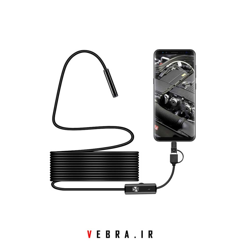 دوربین اندوسکوپی ضدآب (استاندارد IP67) از نوع سیم فنری با قطر لنز 7mm و رزولیشن 480×640، قابلیت اتصال به کامپیوتر و گوشی های اندروید (از طریق OTG) و امکان عکس برداری ، فیلم برداری توسط نرم افزار