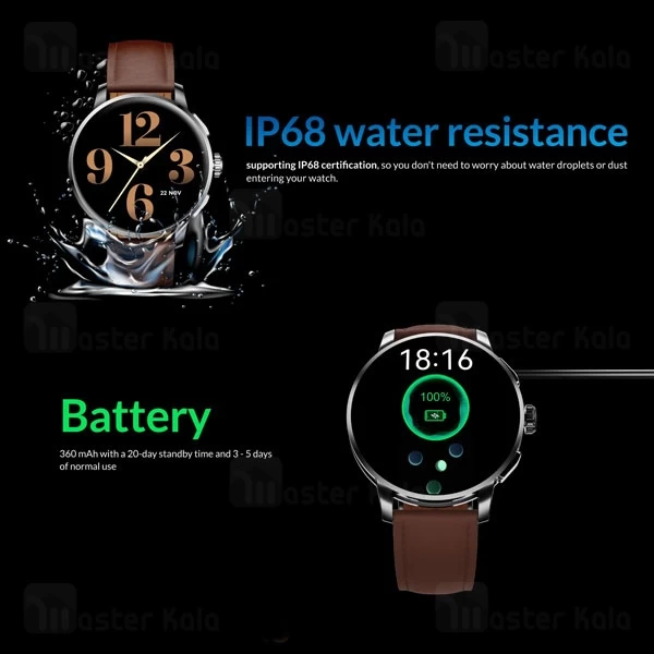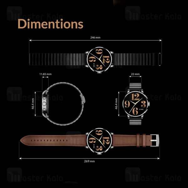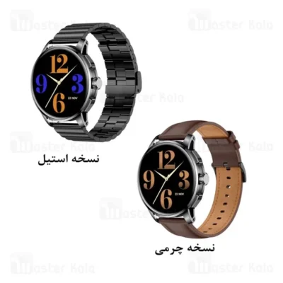 ساعت دارای دو نسخه با بند استیل و با بند چرمی است. همراه هر دو نسخه، بند سیلیکونی هم وجود دارد.