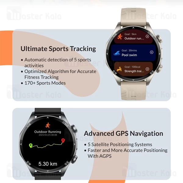 با ارتفاعسنج دقیق ساعت هوشمند Xiaomi Glorimi GX Sport، میتوانید در تمام فعالیتهای کوهنوردی و تمرینات ارتفاعی، ارتفاع واقعی و تغییرات آن را مشاهده کنید. این ساعت مجهز به بارومتر داخلی است و اطلاعات دقیق صعود و نزول را ارائه میدهد. با این دادهها، میتوانید عملکرد خود را بهینه کرده و با اطمینان بیشتری به ارتفاعات بالاتر صعود کنید و از وضعیت محیط پیرامون خود مطلع شوید.