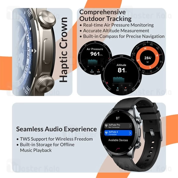 این ساعت همراه همیشگی سلامت شماست و با سنسورهای پیشرفته، ضربان قلب، سطح استرس و میزان اکسیژن خون را بهطور مداوم پایش میکند. تمرینات تنفسی و راهنماییهای بهبود تمرکز، به کاهش استرس و افزایش آرامش کمک میکند. با پایش 24 ساعته، شما میتوانید وضعیت سلامت خود را دقیقاً در طول روز مدیریت کرده و از هر لحظه آگاه باشید.