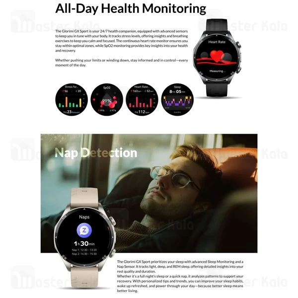 ساعت Glorimi GX Sport با سنسور خواب پیشرفته، خواب سبک، عمیق و REM را ثبت و تحلیل میکند. چه در طول شب کامل و چه هنگام یک چرت کوتاه، ساعت کیفیت و الگوی خواب شما را بررسی میکند. با ارائه نکات شخصیسازیشده و روندهای تحلیلی، میتوانید عادات خواب خود را بهبود داده و با انرژی و سرزندگی روز خود را آغاز کنید.