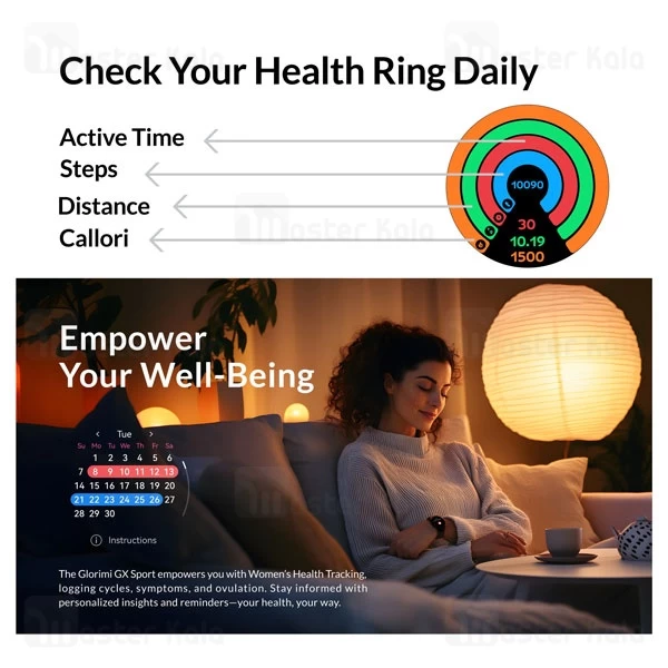 Glorimi GX Sport امکان ثبت چرخه قاعدگی، علائم و زمان تخمکگذاری را فراهم میکند. با ارائه یادآوریها و نکات شخصی، این ویژگی به بانوان کمک میکند تا بهتر با وضعیت سلامتی خود آشنا شوند و برنامههای روزانه و ورزشی خود را با شرایط بدن هماهنگ کنند. مدیریت سلامت شخصی با دقت و آسانی، از دیگر مزایای این قابلیت است.