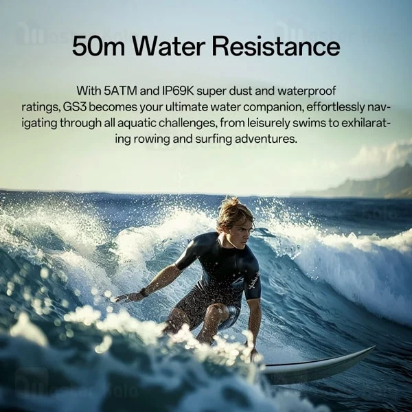 یکی از ویژگی های مهم ساعت هوشمند Black Shark GS3 مقاومت آن در برابر آب باشد. ساعت شیائومی بلک شارک GS3 دارای استاندارد مقاومت IP69K و 5atm است؛ این مقاومت باعث شده شما هنگام شستن دست ها و حمام رفتن بتوانید از این ساعت استفاده کنید. حتی این ساعت را میتوانید با آب با فشار و دمای بالا نیز بشویید. پشت سر گذاشتن موفقیتآمیز 15 تست نظامی نیز حاکی از کیفیت بالا و مقاومت این ساعت
