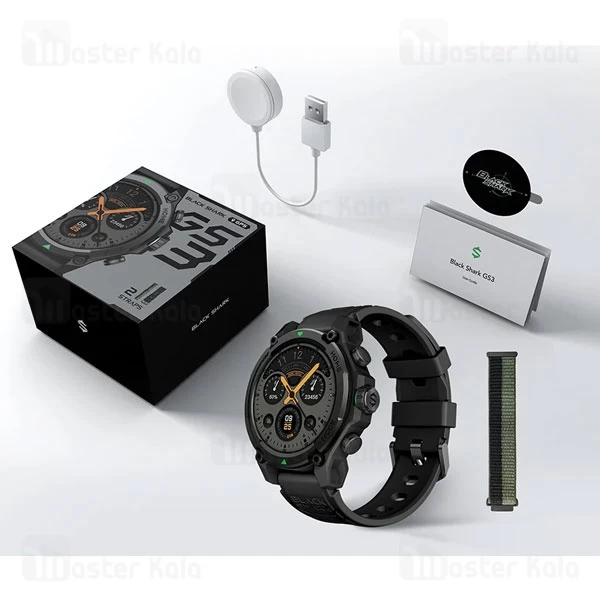 در بسته بندی این محصول، علاوه بر ساعت Xiaomi Black Shark GS3 یک عدد شارژر وایرلس، یک دفترچه راهنما، یک بند سیلیکونی و یک بند پارچهای کشی قرار گرفته است.