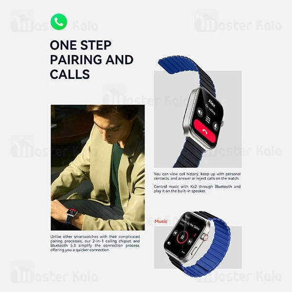 ساعت هوشمند Kieslect Ks2 دارای قابلیت تماس بلوتوثی است. شما می توانید بعد از اطمینان از اتصال بلوتوثی ساعت به گوشی به صورت مستقیم از روی ساعت به تماس ها پاسخ داده یا تماس برقرار کنید. همچنین قابلیت نمایش لیست مخاطبین و تماس ها وجود دارد.