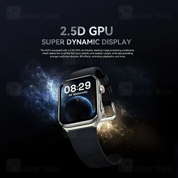 ساعت Xiaomi Ks2 دارای ابعاد 2.01 اینچی است که برای آن رزولوشنی معادل 502×410 پیکسل در نظر گرفته شده است. ساعت Ks2 مجهز به شتاب دهنده پردازش تصویر پیشرو در صنعت 2.5D GPU است که باعث میشود رابط کاربری Ks2 جلوههای بصری رنگارنگتر و واقعیتر شود، در حالی که جلوههای سه بعدی قویتر و پویاتر، پخش انیمیشن و موارد دیگر را نیز ارائه میدهد. در مجموع نمایشگر این ساعت باعث شده تا شما تصاویری بسیار زنده و شفاف را دریافت کنید و از بابت کیفیت آن ها اطمینان خاطر داشته باشید. به واسطه روشنایی 1000 نیتی ساعت هوشمند Kieslect Ks2 استفاده از آن در نور آفتاب نیز مشکلی برای دیدن صفحه ساعت برای شما ایجاد نمیکند.