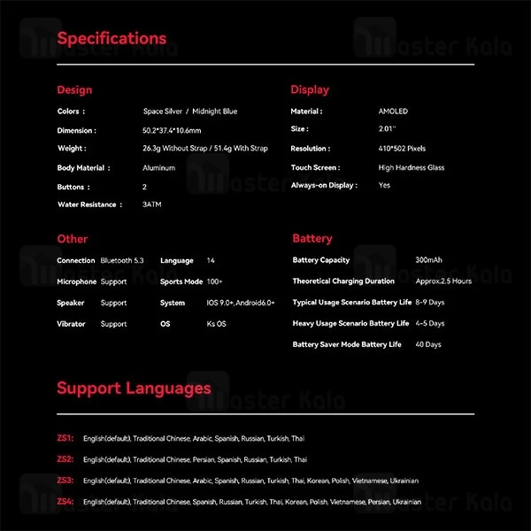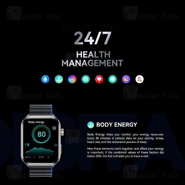 اپلیکیشن این ساعت KS OS است و به راحتی از اپ استور و پلی استور قابل دانلود میباشد. روی پک محصول هم یک کد QR قرار دارد که با اسکن آن میتوانید اپلیکیشن را پیدا کنید.
