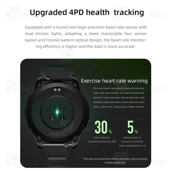 پایش 24 ساعته ضربان قلب: به کمک سیستم تشخیص فوق پیشرفته قرار گرفته بر روی ساعت هوشمند Xiaomi Mibro GS Active، شما میتوانید همواره ضربان قلبتان را تحت کنترل داشته باشید. این ساعت 5 درصد دقت بیششتر در اندازهگیری ضربان قلب و 30 درصد فضای بیشتر برای ذخیرهسازی دادههای مرتبط دارد.