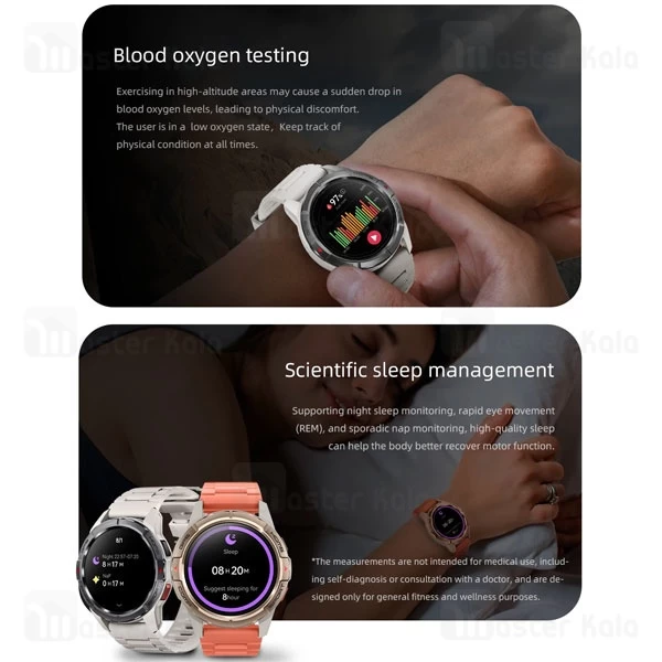 اندازهگیری سطح اکسیژن خون: با این قابلیت میزان SpO2 خونتان را اندازهگیری کنید و بدین ترتیب همواره شرایط جسمانی خودتان را تحت نظر داشته باشید؛ که هنگام انجام فعالیتهای سنگین میتواند کاربرد بالایی داشته باشد. همچنین اگر در شرایط غیر از خواب سطح اکسیژن خون پایینی داشته باشید، به شما هشدار داده می شود.