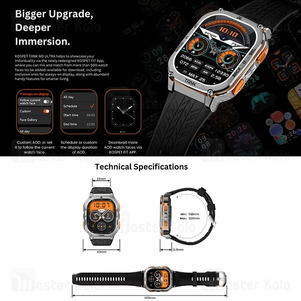 علاوه بر رابط کاربری پر جنب و جوش تر که در KOSPET TANK M3 Ultra باز طراحی شده است، بیش از 500 واچ فیس ساعت خیره کننده برای دانلود از برنامه KOSPET FIT وجود دارد، از جمله مواردی که مخصوص نمایشگر همیشه روشن طراحی شده اند تا انتخاب های بیشتری برای هر سلیقه ای ارائه دهند.