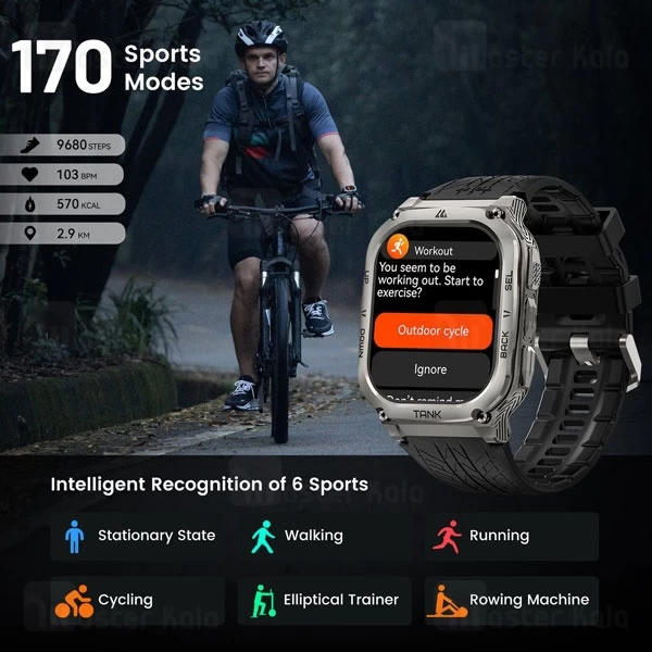 ساعت KOSPET TANK M3 هنگامی که یکی از این شش ورزش پیاده روی ، دویدن ، دوچرخه سواری ، دوچرخه ثابت و دستگاه روئینگ را شروع می کنید به طور خودکار حرکت شما را تشخیص می دهد.
