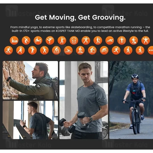 ساعت KOSPET TANK M3 بیش از 170 حالت ورزشی، تمرینات در فضای باز شما را با نقشه برداری دقیق مسیر و اندازه گیری مسافت، سرعت متوسط، کالری سوزانده شده و سایر داده های ورزشی موجود در برنامه سازگار KOSPET FIT ردیابی می کند، به طوری که ساعت هوشمند شما می تواند شما را به سمت اهداف تمرینی خود سوق دهد.
