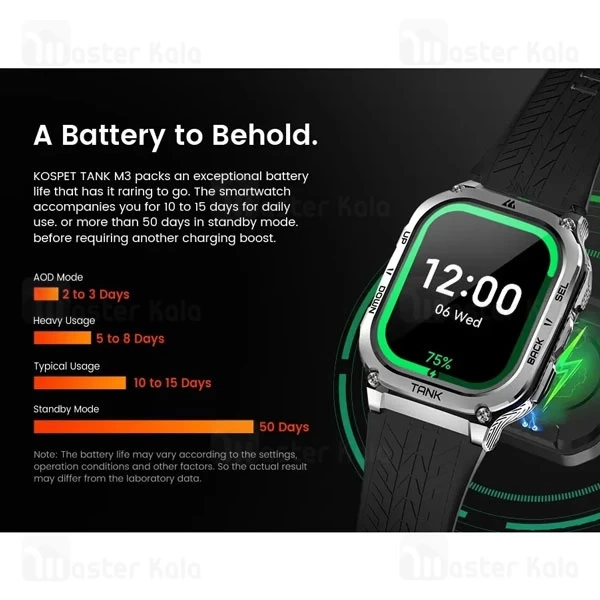 اما کاسپت با در نظر گرفتن متوسط استفاده اعلام کرده است که باتری ساعت Tank M3 ، حدودا 10 تا 15 روز میباشد. این زمان در حین استفاده از صفحه نمایش همیشه روشن به 2 تا 3 روز کاهش پیدا میکند.