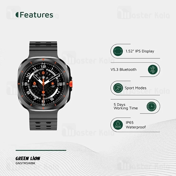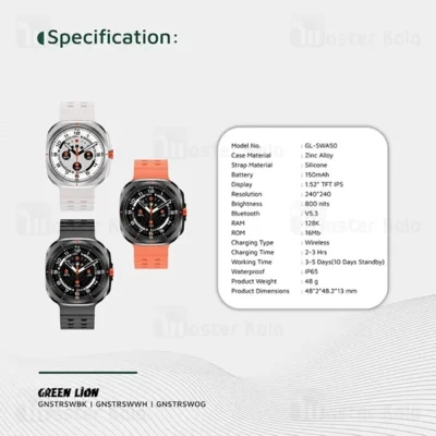ساعت هوشمند Green Lion Strive ترکیبی از طراحی زیبا، فناوری روز و امکانات کاربردی است که تجربهای کامل از یک گجت پوشیدنی مدرن را ارائه میدهد. این ساعت با بدنهای ساخته شده از آلیاژ روی و بند سیلیکونی ارگونومیک، هم راحتی و هم دوام را تضمین میکند. صفحهنمایش 1.52 اینچی TFT IPS با وضوح 240×240 و روشنایی حداکثر 800 نیت، استفاده از ساعت را در فضای باز و زیر نور خورشید آسان میسازد.