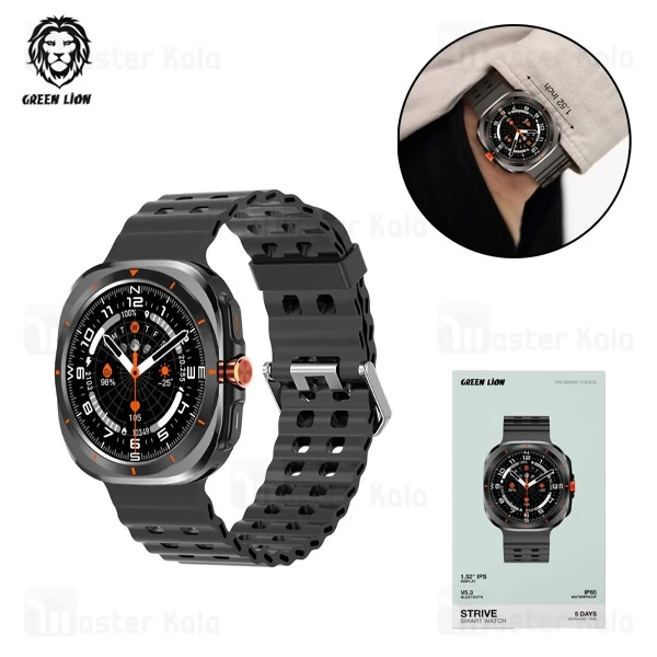 ساعت هوشمند Green Lion Strive ترکیبی از طراحی زیبا، فناوری روز و امکانات کاربردی است که تجربهای کامل از یک گجت پوشیدنی مدرن را ارائه میدهد. این ساعت با بدنهای ساخته شده از آلیاژ روی و بند سیلیکونی ارگونومیک، هم راحتی و هم دوام را تضمین میکند. صفحهنمایش 1.52 اینچی TFT IPS با وضوح 240×240 و روشنایی حداکثر 800 نیت، استفاده از ساعت را در فضای باز و زیر نور خورشید آسان میسازد.