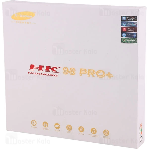 بدنه ساعت HK98 Pro Plus فلزی و از جنس آلیاژ روی بوده که دارای مقاومت بالایی در برابر ضربات است. بعلاوه 4 بند سیلیکونی، چرمی و پارچه ای، داخل پک بسته بندی می باشد.
