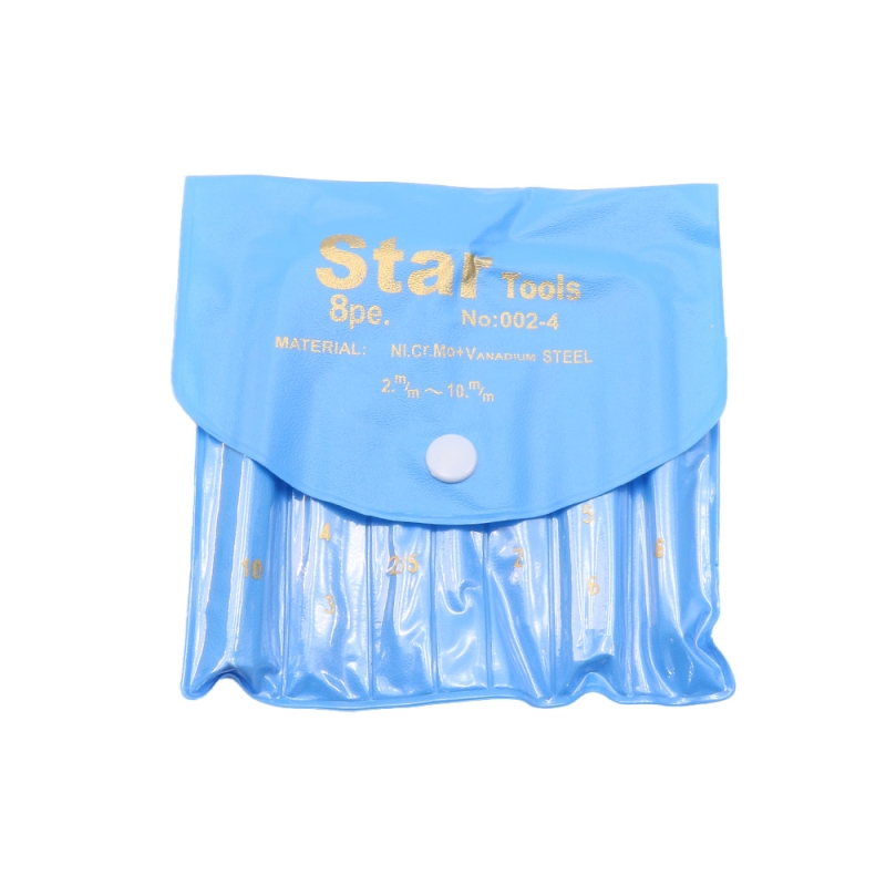 محصول شرکت SUPER TOOLS با کیفیت دارای 8 عدد آچار آلن سایز 2 تا 10 میلیمتر توضیحات مشخصات ست 8 تایی با سایز های 2/2.5/3/4/5/6/8/10mm ساخته شده از فولاد آلیاژی کروم – وانادیوم به همراه کیف پلاستیکی مخصوص سخت کاری…