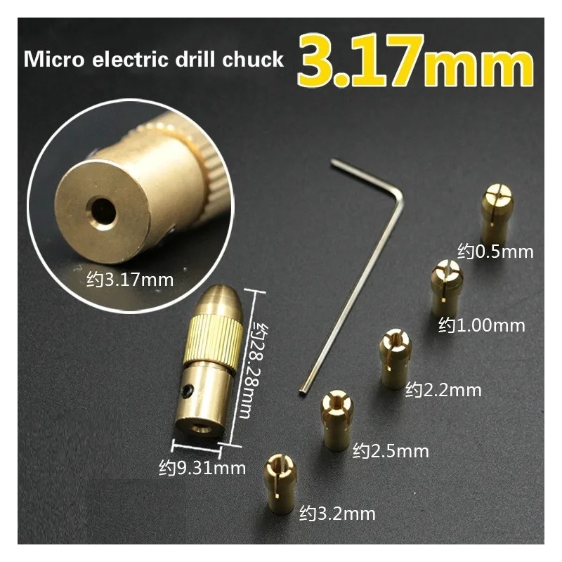 ست سه نظام پنج سر با قطر شافت 3.17mm و سایز مته 0.5 تا 3mm